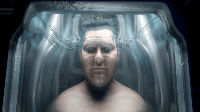 Here’s where things take a turn. Even though Ascher and his team interview several experts in the field of philosophy and cultural analysis, these individuals seem to only serve as the color commentary for the primary anecdotal discussions given by several individuals are, in a strange reality, the true focus of explaining Simulation Theory. The execution of this is brilliant. Ascher worked with Mindbomb Films to devise synthetic avatars to represent each of the visible speakers — Paul Gude, Alex LeVine, Brother Læo Mystwood, and Jesse Orion — dubbed “Eyewitnesses” which serve to both protect their identities and enable Ascher to construct facsimiles of various parts of their testimony. While it’s a tad comical at first, the visual styling of the eyewitnesses empowers Ascher to design Glitch to be more malleable in it’s storytelling so that he can show the audience, us, a version of a twisted reality. A simulation inside a simulation, if you will. These technological aspects help bring home the more esoteric elements discussed by Dick, the experts, and the eyewitnesses without losing any of the sincerity of the explanations.